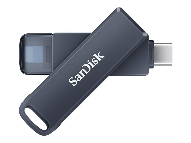 The SanDisk Phone Drive offers a convenient solution for expanding storage with its 256 GB capacity. Designed for versatility, it features a USB-C and Apple Lightning interfaces, making it compatible with a range of devices including iPhones, iPads, and iPods. With a read rate of 90 MB/s and a write rate of 10 MB/s, transferring files is efficient and hassle-free. The inclusion of password protection ensures that your data remains secure, while the key ring loop provides added convenience for on-the-go users.