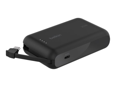 Belkin BoostCharge - Strømbank - med integrert kabel - 10000 mAh - 20 watt - 3 A - Fast Charge - 2 utgangskontakter (USB-C) - svart