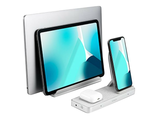 Designed exclusively for Apple, StudioCaddy with Qi wireless charging for Apple devices is a versatile, space-saving solution that maximizes desktop space while keeping all of the devices in your Apple ecosystem charged, organized and within reach. Dual Qi charger works with any Qi-enabled iPhone. Also charges AirPods. Magnetically attaches to the MacBook/iPad stand - detaches for more flexibility.
