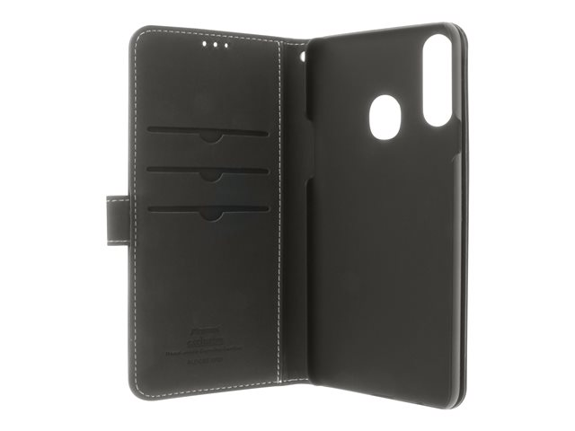 Insmat Exclusive - Lommebok for mobiltelefon - ekte skinn, papir, kartong, polykarbonat, aluminiumsfolie - svart - for Samsung Galaxy A20s
