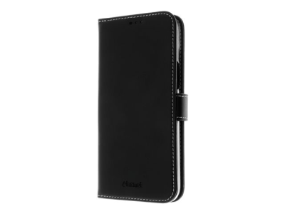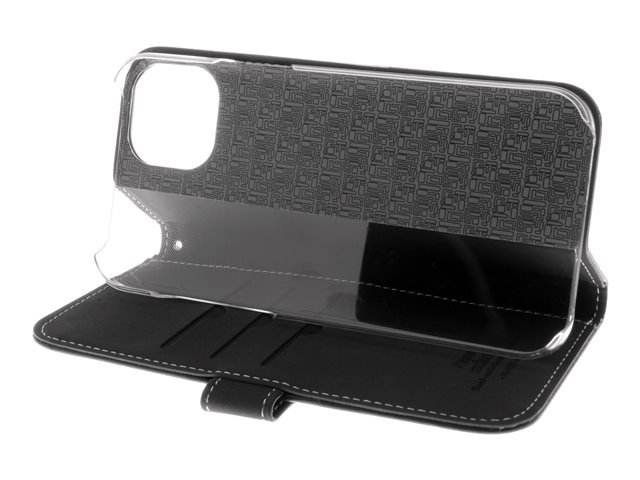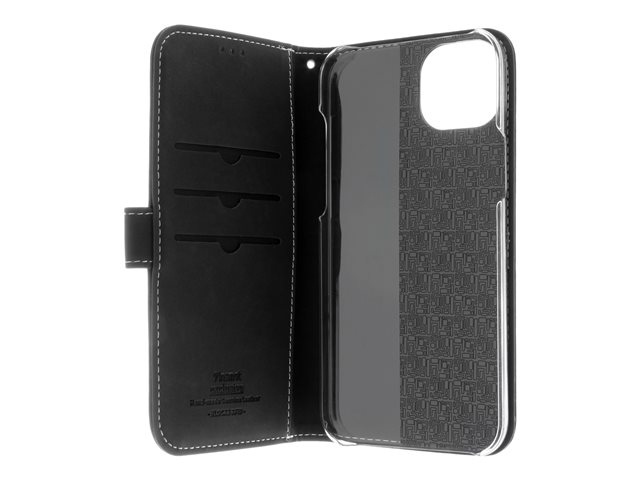 Insmat Exclusive - Lommebok for mobiltelefon - ekte skinn, polykarbonat, kartong+papir+aluminiumsfolie - svart - for Apple iPhone 15 Plus 650-3185