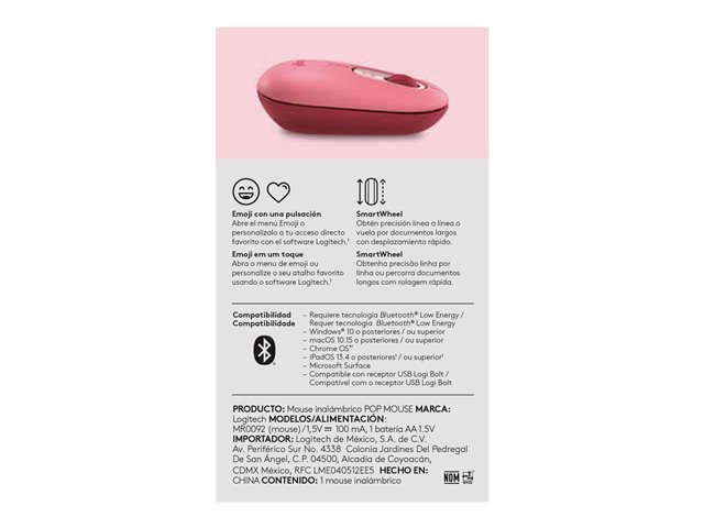Logitech POP - Mus - tilpassbar emoji - optisk - 4 knapper - trådløs - Bluetooth 5.1 LE - hjerteknuser 910-006548