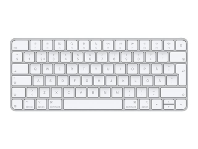Apple Magic Keyboard har fått ny, slank design med innebygd oppladbart batteri og enda bedre tastefunksjoner. Den forbedrede saksemekanismen gjør at hver tast er mer stabil og beveger seg mer effektivt. I tillegg har Magic Keyboard fått en lavere profil, slik at du alltid skriver komfortabelt og med presisjon. Det kobles automatisk til Macen, så du kan begynne å jobbe med det samme. Og batteritiden er helt utrolig. Batteriet varer i en måneds tid eller mer mellom hver lading.