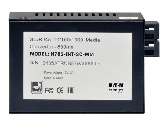 Eaton Tripp Lite Series Gigabit Multimode Fiber to Ethernet Media Converter, 10/100/1000 SC, International Power Supply, 850 nm, 550 m (1,804 ft.) - Fibermedieomformer - 1GbE - 10Base-T, 100Base-TX, 1000Base-T - RJ-45 / SC flermodus - opp til 550 m - 850 nm