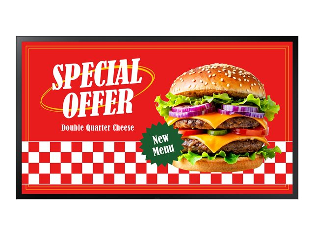 Samsung OH46DX er en allsidig kommersiell skjerm som er skreddersydd for digital skilting. Med SMART Signage Platform og MagicInfo S10 Player gir denne skjermen mulighet for sømløs innholdshåndtering. Med en lysstyrke på 4000 cd/m² og et kontrastforhold på 6000:1 forblir bildene klare og levende, selv i full sol. Skjermen er designet for døgndrift og tåler et bredt temperaturområde fra -30 °C til 50 °C, noe som gjør den egnet for ulike miljøer. Den 46-tommers LED-bakgrunnsbelyste LCD-flatskjermen støtter flere skjermmoduser, inkludert stående og liggende, noe som gir fleksibilitet for ulike reklamebehov. I tillegg sørger beskyttende funksjoner som værbestandig og støtsikker design for pålitelighet i utendørs omgivelser, mens det avanserte kjølesystemet bidrar til å opprettholde optimal ytelse.