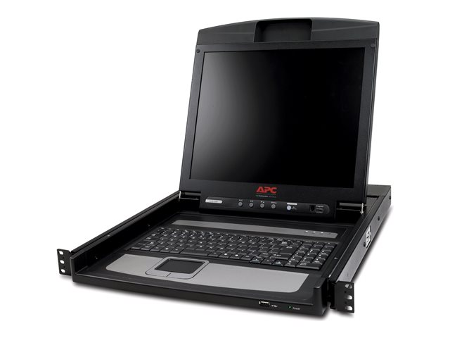1U rackmonterbart tastatur, mus og LCD-konsoll med amerikansk-engelsk tastaturlayout.
