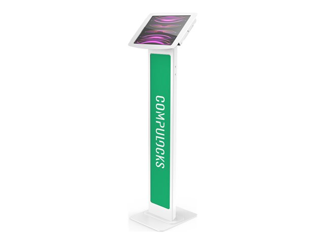 Our BrandMe floor stand allows you to utilize a panel for branding, call to action or custom design to bring attention to your interactive display or kiosk. The tilting mount allows the iPad enclosure to be set in either portrait or landscape mode and the stand base offers additional security features, securing the power source and bolting the unit to the floor.