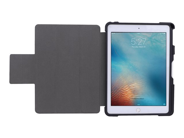 - Cover easily folds into stand without blocking camera